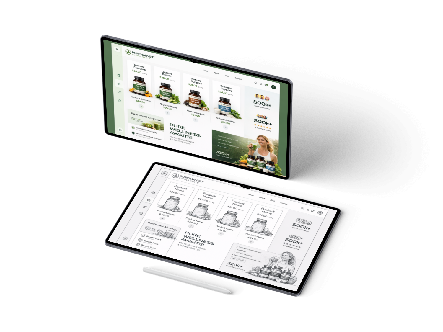 Delivered the full digital design and e-commerce build for PureHarvest, a supplements brand focused on health, trust, and product clarity. Established the visual design direction and translated the brand into a clean, structured UI that communicates credibility and supports confident purchasing. Designed the complete website interface with strong emphasis on product presentation, user trust signals, and conversion-focused journeys. Built and launched the site in Shopify, creating a fully responsive and scalable online store.